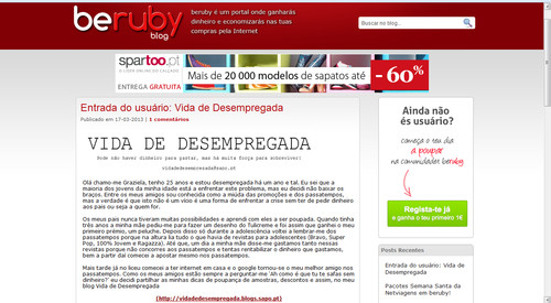 Hoje estamos no blog do Beruby, um site onde podem ganhar uns trocos e ver novos blogs dos seus utilizadores.