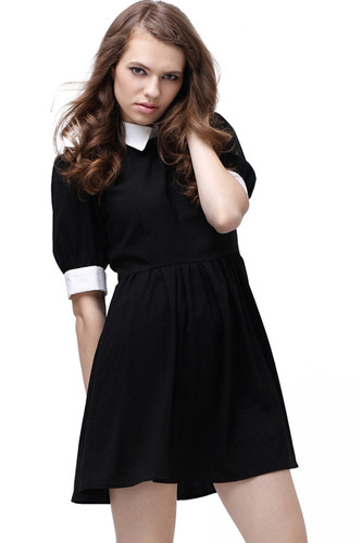 Retro Lapel Neck Black Dress