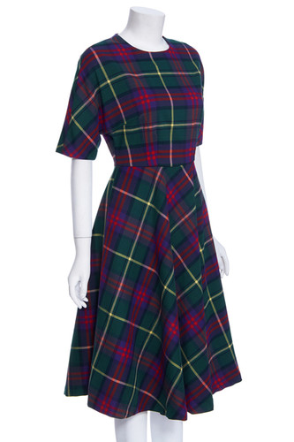 Green Plaid Short-sleeved Maxi Dress