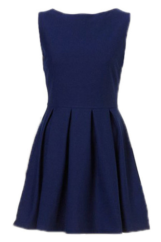 Sleeveless Pleated Zippered Deep Blue Dress