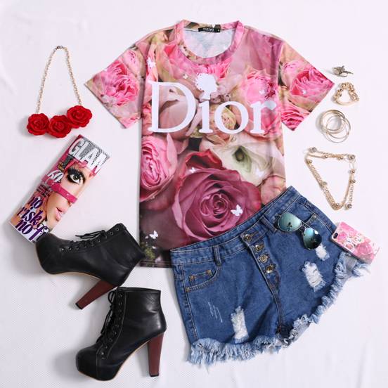 Já estão a pensar no bom tempo? Eu já, por isso, aqui fica um post com sugestões de looks para a Primavera. Por exemplo, esta Dior & Roses Print T-shirt da Romwe apela mesmo às cores e cheiros desta estação e durante o dia de hoje vai estar à venda por apenas $9.99 (no dia 23 de Maio volta ao preço normal $24.99).