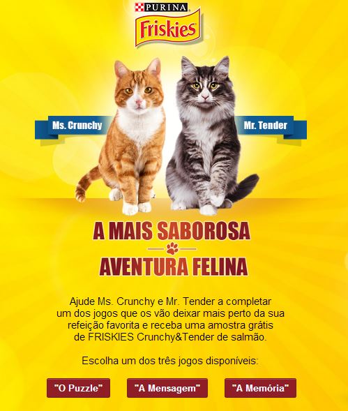 Joguem um dos três jogos disponíveis e ganhem uma amostra de comida para o vosso bichano. Para participarem entrem aqui.
