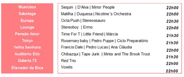 Para esta semana, recomendo-vos boa comida e muita música. Primeiro o showcooking da Joana Roque, autora do blog "As Minhas Receitas" e depois alguns concertos na zona da baixa Lisboeta. Vejam aqui o programa.