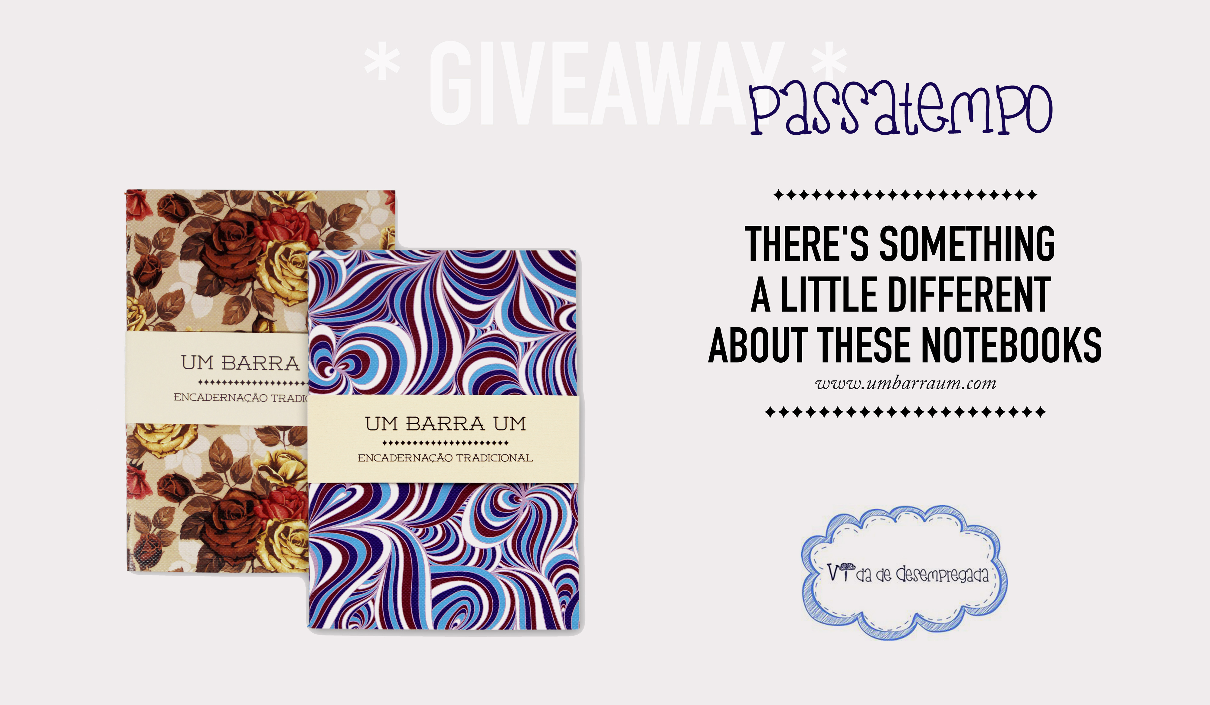 Como eu sei que vocês também gostam de coisas bonitas, a Um Barra Um e o Vida de Desempregada têm para vos oferecer os 2 cadernos da imagem abaixo. Para isso, basta seguirem todos os passos do formulário.