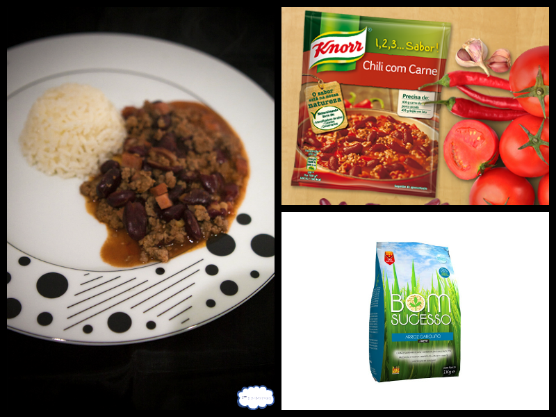 Ontem foi o jantar de apresentação da Júlia à família, mas com a falta de tempo acabámos por ter de improvisar. Assim, optámos por experimentar o Chilli com carne da colecção 1, 2, 3... Sabor! da Knorr com a Arroz Carolino Bom Sucesso.