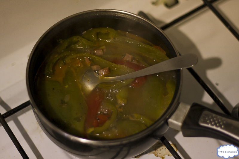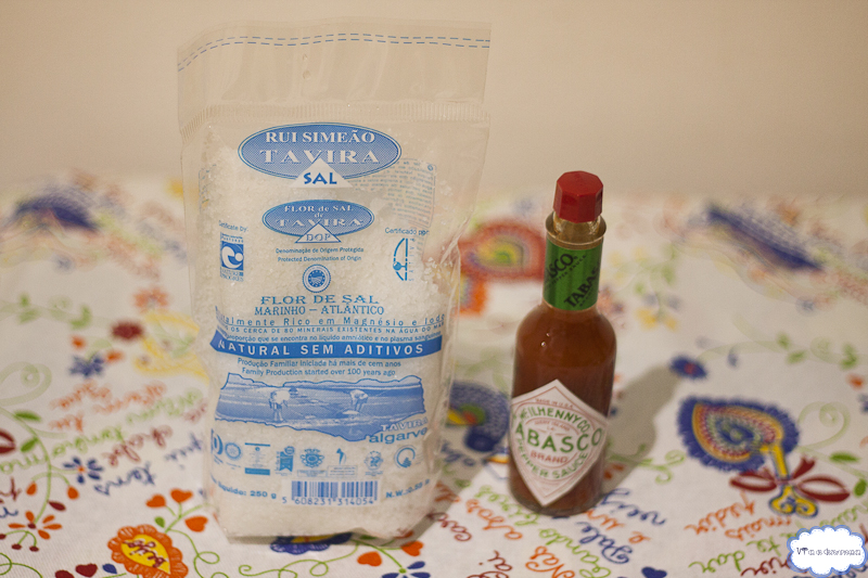Utilizei também Tabasco Red, o qual já havia utilizado nos Bifes com arroz de alho e pimentos guisados, neste caso utilizei-o para que o sabor do pimento saísse realçado.