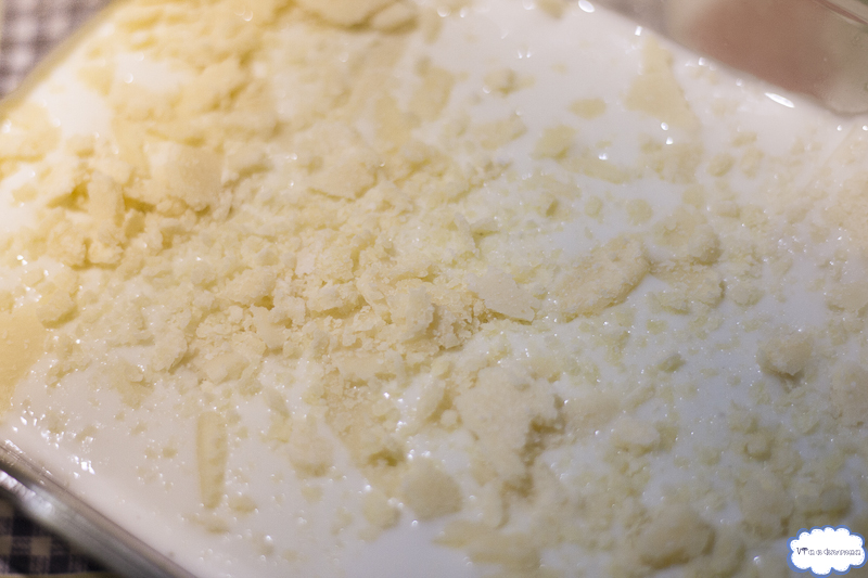7. Seguidamente, deite o molho bechamel sobre as mesmas e polvilhe com queijo "esfarelado".
