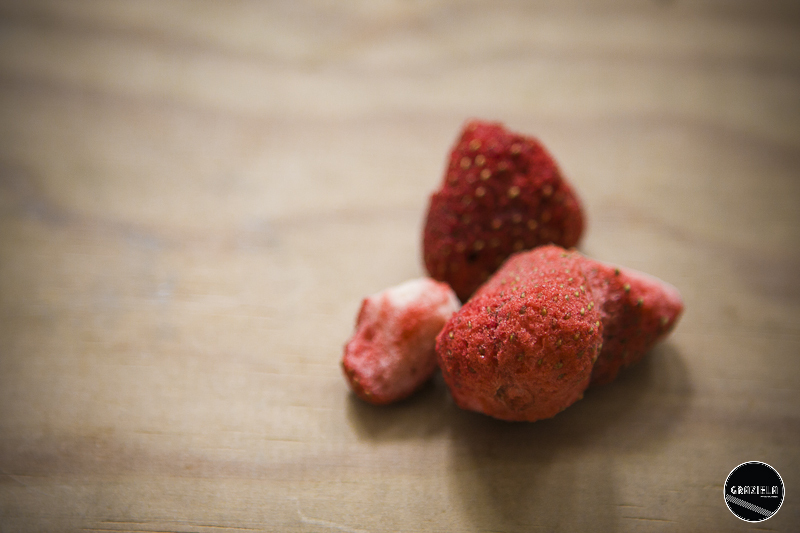 Para decorar esta receita usei morangos Frubis, um snack feito de 100% fruta. Já agora, para quem não conhece, o Frubis é um produto natural, que preserva as vitaminas e fibras da fruta, recorrendo a uma tecnologia de secagem mista, que minimiza o impacto nas suas características. Para além do sabor a Morango estão disponíveis: maçã, ananás e pêssego.