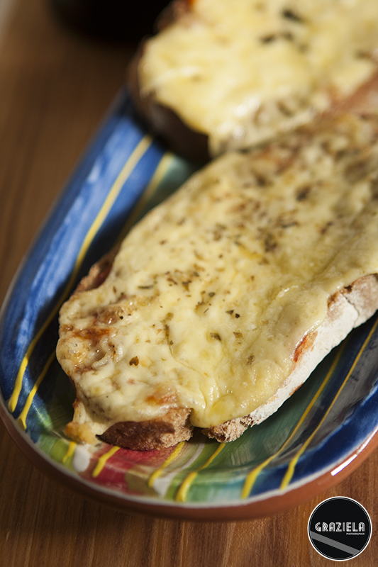 Quando o meu namorado faz anos ou o avô dele nos convida para almoçar, vamos sempre a um restaurante italiano no Seixal. É um daqueles restaurantes pequeninos onde tudo é caseiro e a comida tem um sabor fantástico. Recentemente, recebi uns queijos e então, lembrei-me de "recriar" o pão de alho que costumamos comer lá. A receita foi feita segundo o meu paladar, pelo que provavelmente eles nem fazem assim no restaurante.