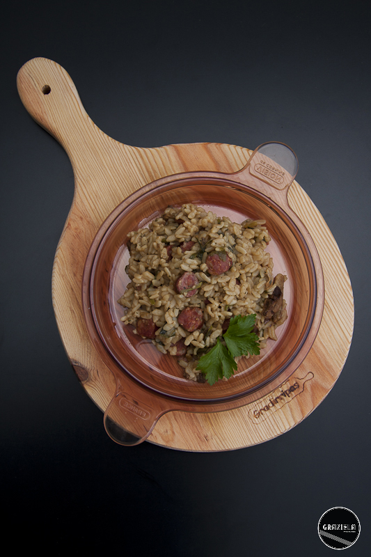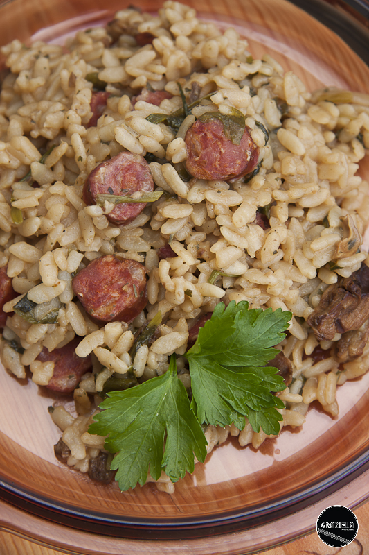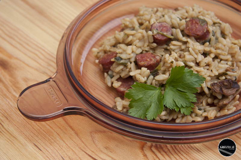 Receitas rápidas: Risotto de cogumelos com linguiça